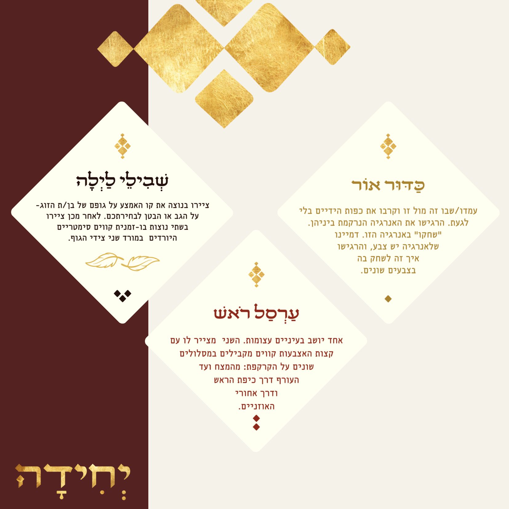 ערכת הקלפים החדשה שלנו “יחידה” היא גשר הזהב שיצרנו עבורכם, כדי ללוות אתכם שלב אחר שלב ממרחבי החיים הרגילים אל המרחב הזוגי האינטימי.